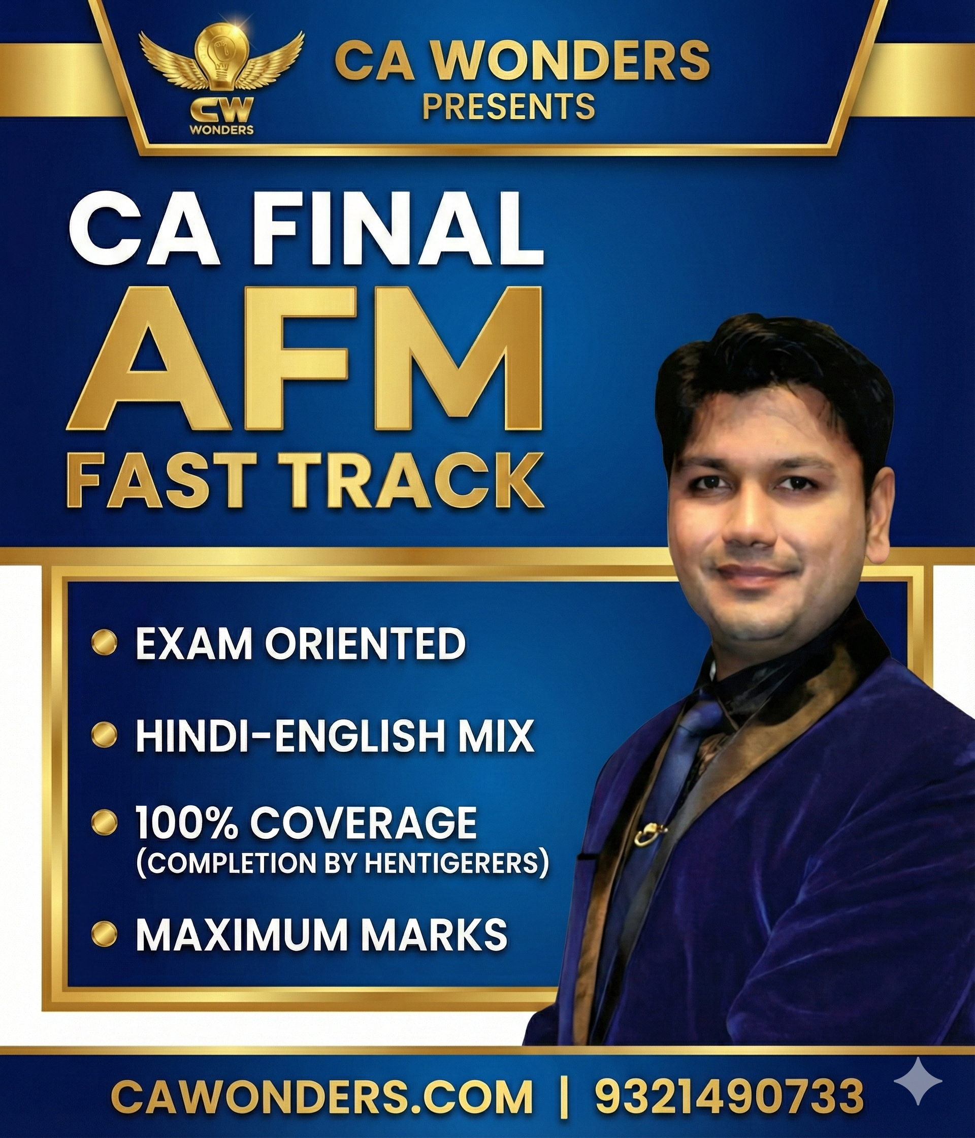 - 3 in 1 Regular Mini Course Includes – Includes Stock Market + CA Final AFM Practical Insights Regular Mini Batch + 7 Days Super Fast Track Regular Minimum Revision